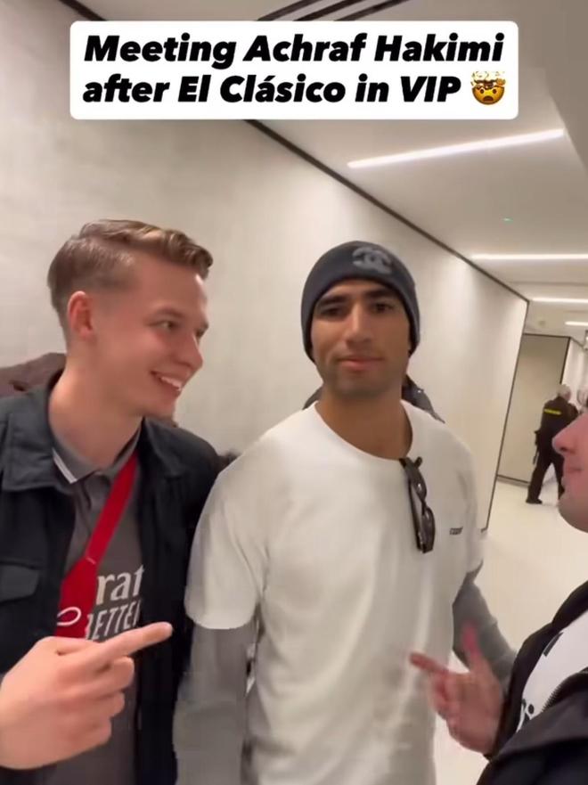 賽后,有球迷在伯納烏VIP區(qū)域遇到了到場觀戰(zhàn)的阿什拉夫,并與其進(jìn)行合影。